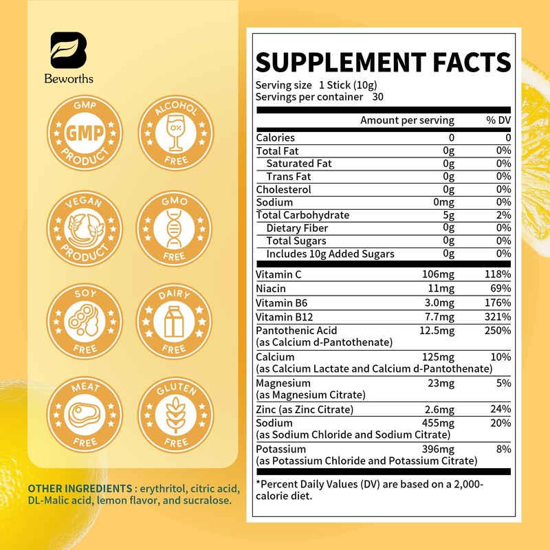 - ELECTROLYTES POWDER REPLENISHMENT - B BEWORTHS Electrolytes Powder Packets provide a sugar-free and zero-calorie electrolyte drink mix to replenish hydration and boost energy levels. Fortified with essential vitamins, magnesium, and other key nutrients, these electrolyte packets help support overall wellness and combat fatigue*.
