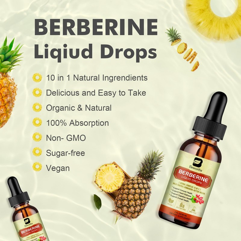 - Powerful Blend Ingredient-- Berberine supplement has been studied for its potential effects to support overall health including enhanced digestive system, heart support, and sores in mouth care and gut health.Berberine liquid drops help maintain health levels balance.Black pepper a natural absorption-enhancing herb, is added to unlock the full potential of each ingredient. Berberine supplement organic will takes to support your well-being and keep you feeling your best.
