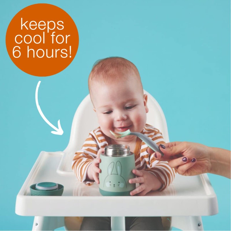 - FRESH BABY FOOD ON THE GO Our 210ml heat container for food is made of double-walled stainless steel, allowing baby purees and mini pasta to be heated at home and stay warm for up to 4 hours. You can also keep yoghurt or fruit purees cool for up to 6 hours.