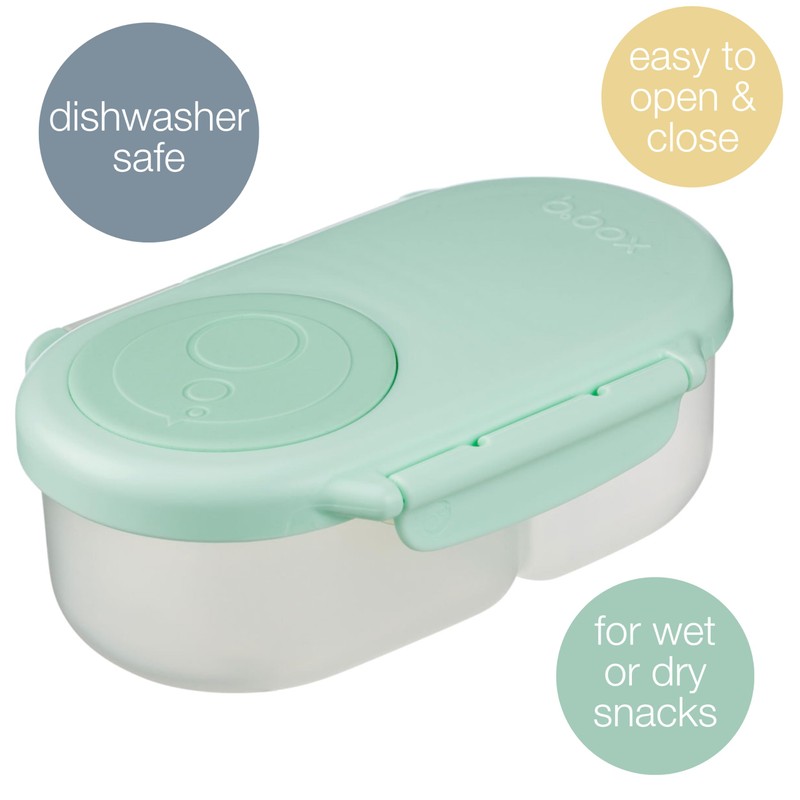 b.box Snack Box for Kids & Toddlers: 2 Compartment Snack Containers, Mini Bento Lunch Box. Leak Proof, BPA free, Dishwasher safe. School Supplies. Ages 4 months+ (Spearmint, 12oz capacity)