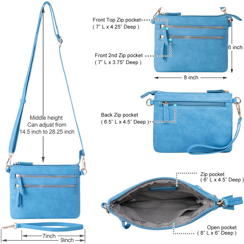 - Se adapta fácilmente a una portafolios pequeña y delgada, teléfono celular y otros artículos más pequeños que usas de forma rutinaria. Contiene 1 bolsillo interior con cierre y 1 cierre en la parte posterior del bolso. Es un bolso pequeño y de tamaño pequeño. Este bolso es ideal cuando solo lleva una pequeña cantidad limitada de artículos.