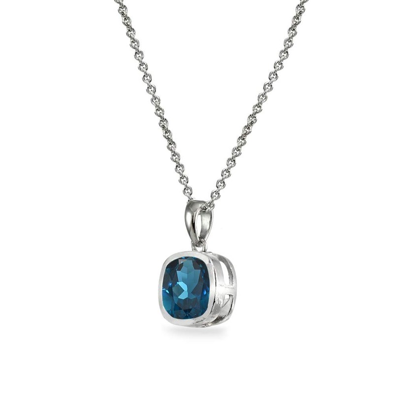 - FEATURE - The perfect accesory for any occasion, this drop necklace is a beautiful addition to any jewelry collection. This pendant necklace showcases a sparkling 7mm cushion-cut London blue topaz stone in a polished bezel setting.