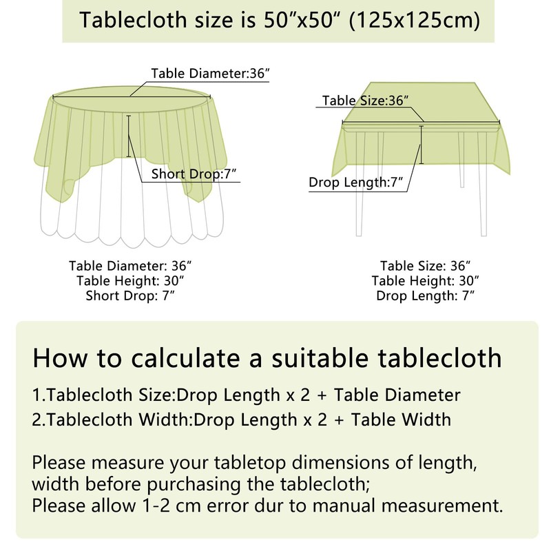 - Please noted: It's 50"x50"(125cm*125cm). Please choose according the size of your table.