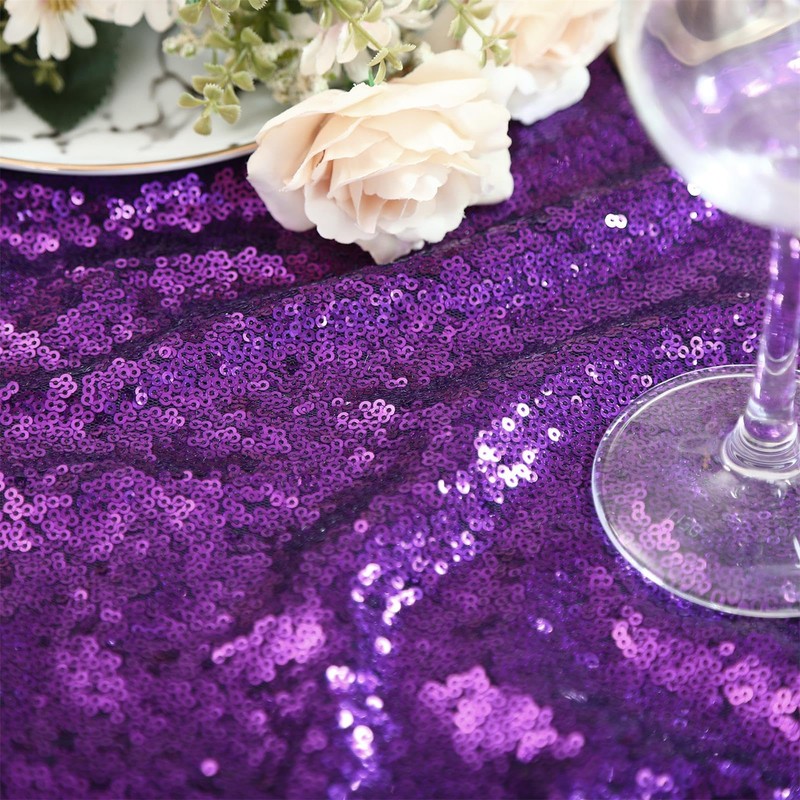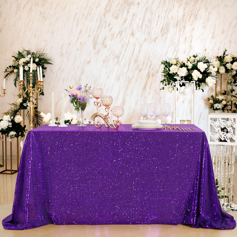 B-COOL Sequin Tablecloth Christmas Tablecloths 90x156 Inch Seamless Purple Table Cloth Sparkly Fabric Rectangular Tablecloths for Ceremony Holiday Girls Party Exhibition Table Decor