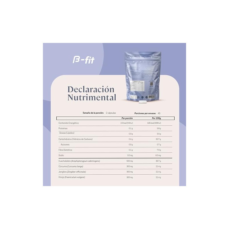 B-FIT B Digestivo Natural sin Sabor - 90 Cápsulas - Suplemento Alimenticio con Extractos de Cuachalalate Cúrcuma Jengibre e Hinojo - Sin Ingredientes Artificiales - Fácil de Consumir