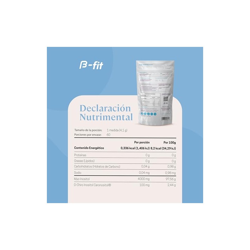 - Inositol (4g) y Chiro Inositol Chirositol (100 mg) en una fórmula óptima 40:1. Ingredientes 100% puros y sin aditivos innecesarios. INOSITOL | Ofrece una fórmula respaldada por la ciencia con alta biodisponibilidad y absorción garantizada. INSTRUCCIONES | Dispensa una medida (4.1 g aprox.) del polvo en un vaso. Mezcla con la bebida de tu preferencia hasta que se disuelva por completo. Toma la mezcla diariamente para obtener los máximos beneficios. OFRECEMOS MAS | Aprovecha nuestras ofertas especiales y combina tu Inositol con otros productos B