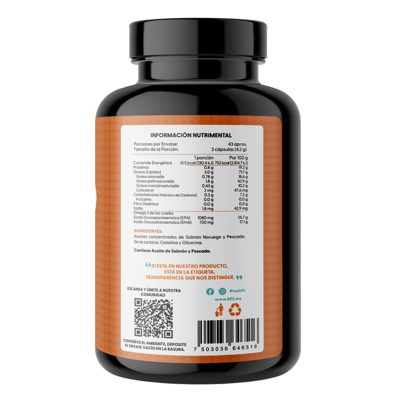 B-Fit |Omega 3 de salmón noruego | 130 cápsulas de 1,400mg | Ingredientes naturales | Distintivo EPAX | La mezcla ideal DHA y EPA