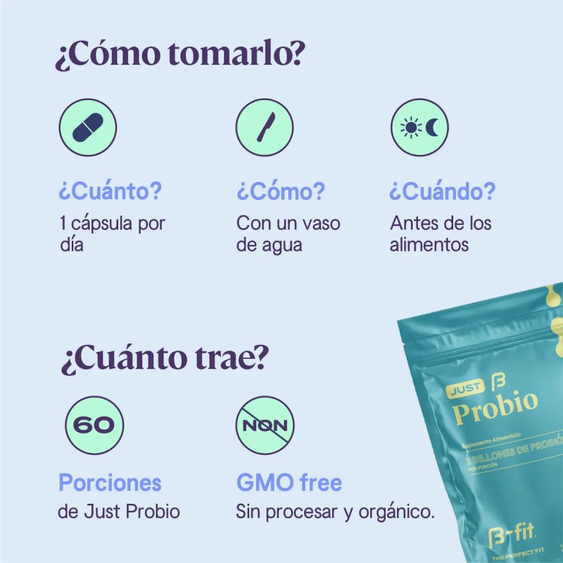 B-Fit ofrece un suplemento completo con cepas probióticas seleccionadas y fibra prebiótica que alimenta las bacterias buenas de tu intestino. Es perfecto para personas con problemas digestivos, estrés, fatiga, o quienes toman medicamentos que alteran la microbiota intestinal.