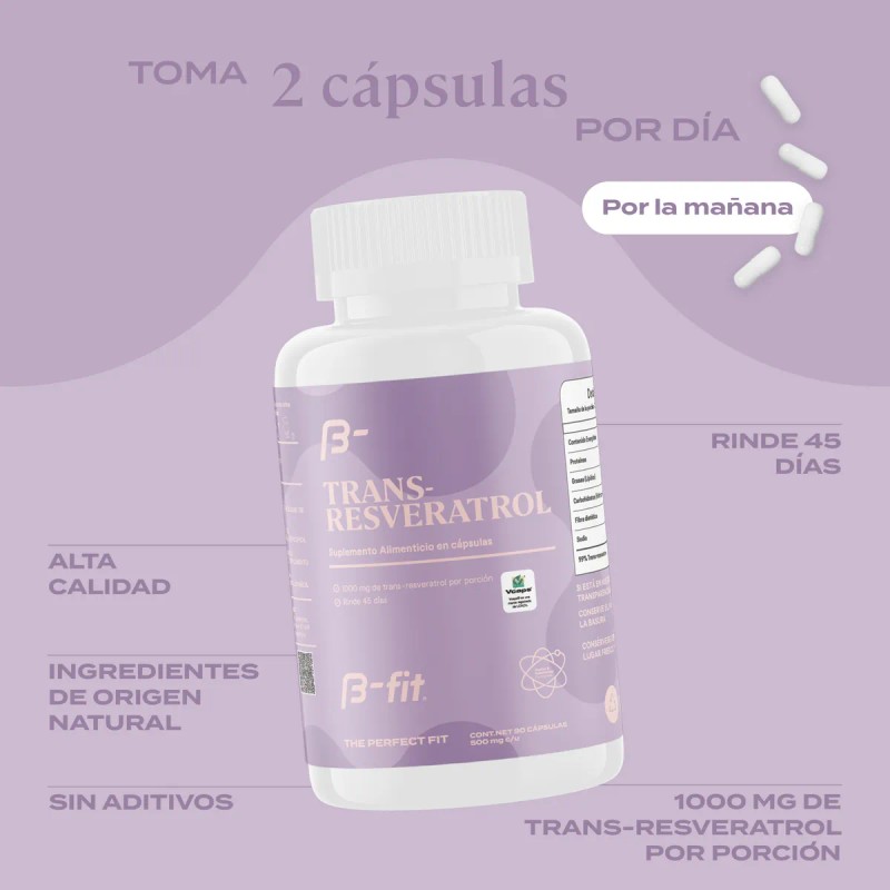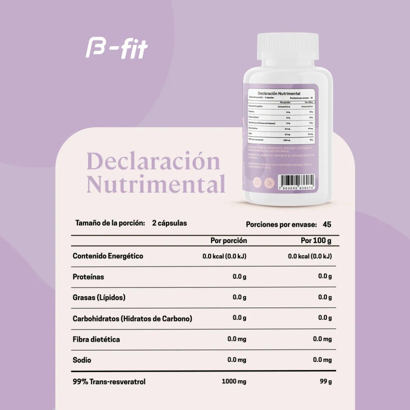 B-fit Trans-resveratrol 90 Capsulas 1000mg 45 Porciones Sin Sabor