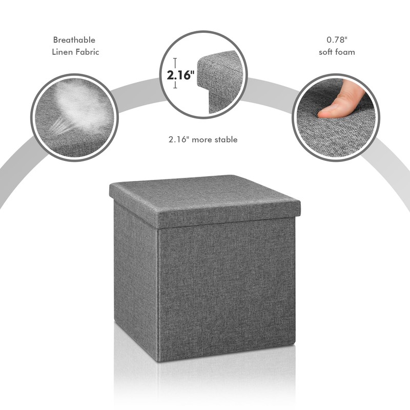 B FSOBEIIALEO Storage Ottoman with Tray, Small Ottomans Cube Folding Coffee Table Foot Stool Footrest Seat, Dark Grey Linen 16"X15.7"x15"