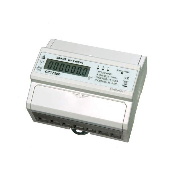 B + G E Tech DRT728D Digital Electricity Meter Rotary/WATT METER FOR DIN RAIL MOUNT 3 (80) A LCD S0