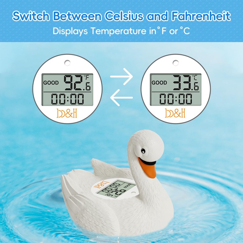 - 2 in 1 baby bath thermometer, swan shaped bath thermometer can measure the bath water temperature for baby, also the room temperature.