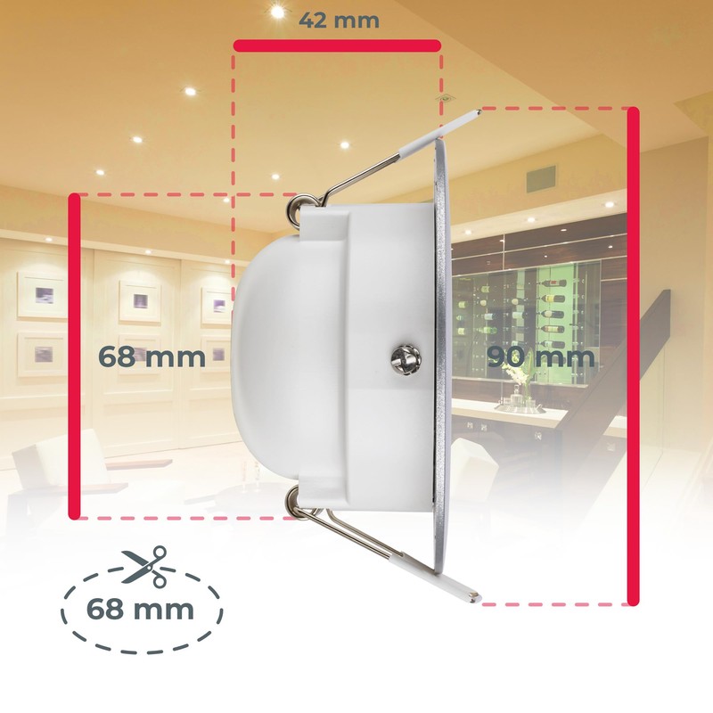 - Installation dimensions: for the installation of these LED recessed lamps, you must insert an approx. Drill 68mm hole. Then you can easily cable and insert the LED bathroom lamps with the dimensions 90 x 42 mm (D x H)