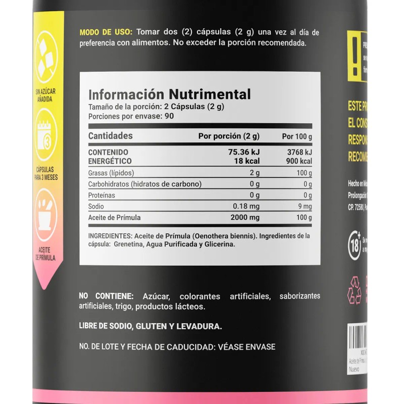 Principio activo: Aceite de prímula (onagra) con alto contenido de GLA