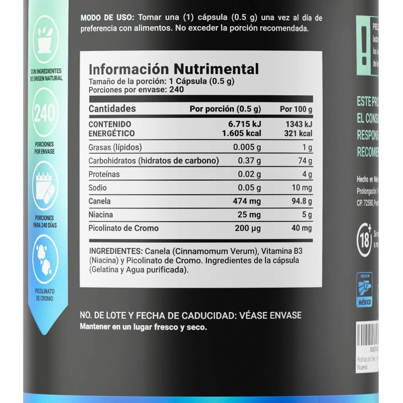 ✔️ Picolinato de Cromo – Ayuda a regular el metabolismo de grasas y carbohidratos