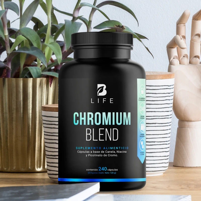 B-Life Chromium Blend te ofrece un potente suplemento de Picolinato de Cromo con 240 cápsulas por envase, ideal para mantener el equilibrio metabólico y apoyar tu estilo de vida saludable.