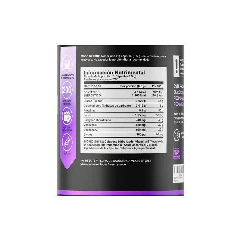 Beneficios clave: ✅ Estimula la producción natural de colágeno ✅ Fortalece el cabello y reduce su caída ✅ Mejora la elasticidad de la piel y fortalece las uñas ✅ Fórmula vegana, libre de gluten, lactosa y saborizantes