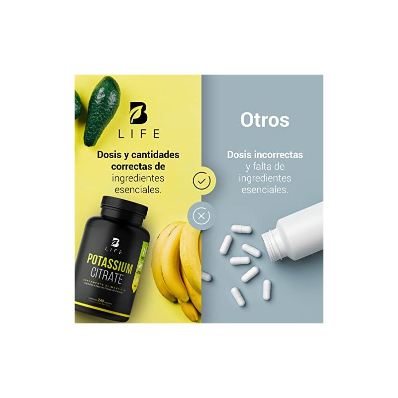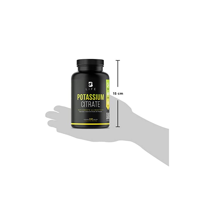 🌟 ⭐ B Life Company Citrato de Potasio 800 mg de Potasio (Provenientes de 1000 mg). Ingredientes Naturales de 240 Cápsulas. Potassium Citrate ⭐ 🌟
