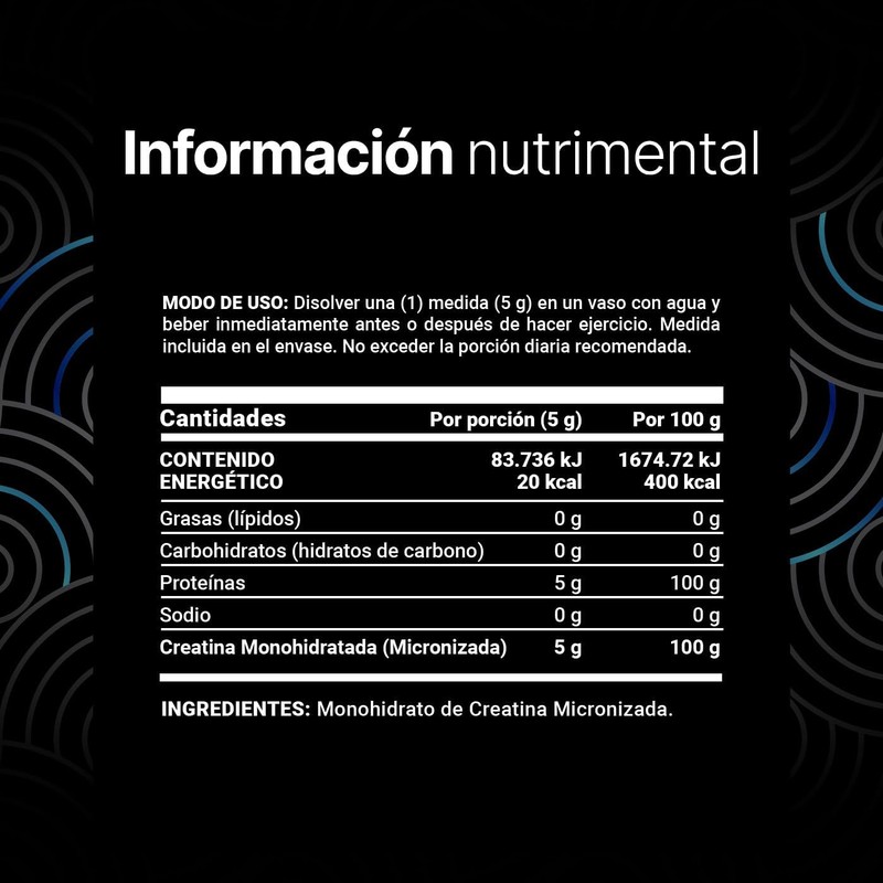 - Disolver una medida (5 g) en un vaso con agua y consumir antes o después de hacer ejercicio (dosis sugerida).