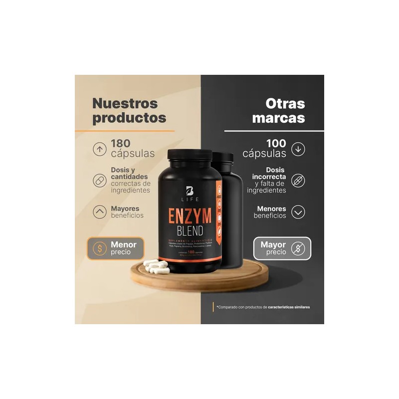 B Life Enzym Blend – Enzimas Digestivas Naturales con Probióticos y Papaya (180 Cápsulas)