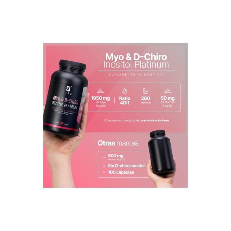 B Life Myo y D-Chiro Inositol Ratio 401 260 cpsulas 2000 mg por porcin Ingredientes Naturales Myo D-Chiro Inositol Platinum.