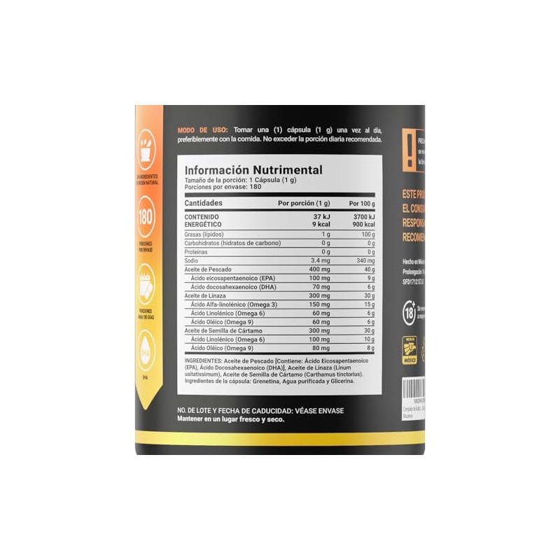 B Life Omega 3-6-9 con 180 Cpsulas Concentracin de EPA y DHA 1000 mg con Aceite de Pescado, Linaza y Crtamo Mezcla Completa de cidos Grasos...