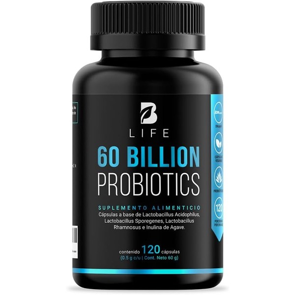 B Life Probióticos 60 Billones UFC | 120 Cápsulas | Liberación Retardada + Inulina de Agave