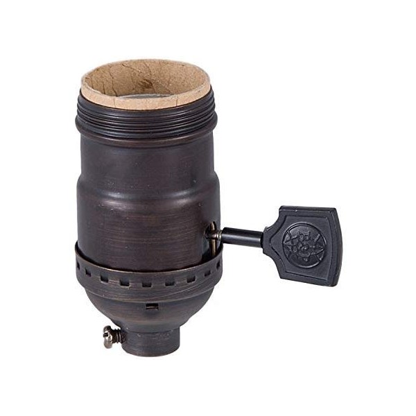 B&P Lamp® Solid Brass Antique Bronze Finish Medium Base On/Off Socket With Flat Key