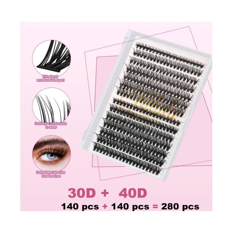 B & Q DIY Cluster Lashes 280pcs Individual 30D+40D 0.07 Natural Clusters D Black NIB