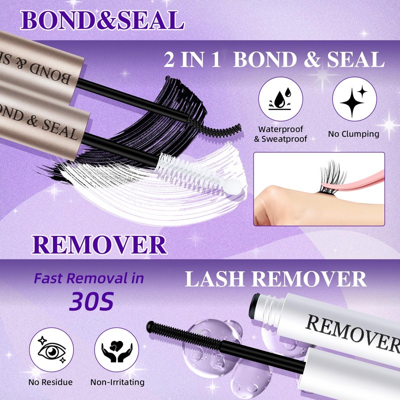 - 【Long-Lasting & Waterproof Bond and Seal Lash Glue】No need to worry about rain or tears — our eyelash glue is waterproof and holds false eyelashes securely in place all day. The dual-ended bond and seal lash glue ensures safe, irritation-free wear and clean removal with the included remover