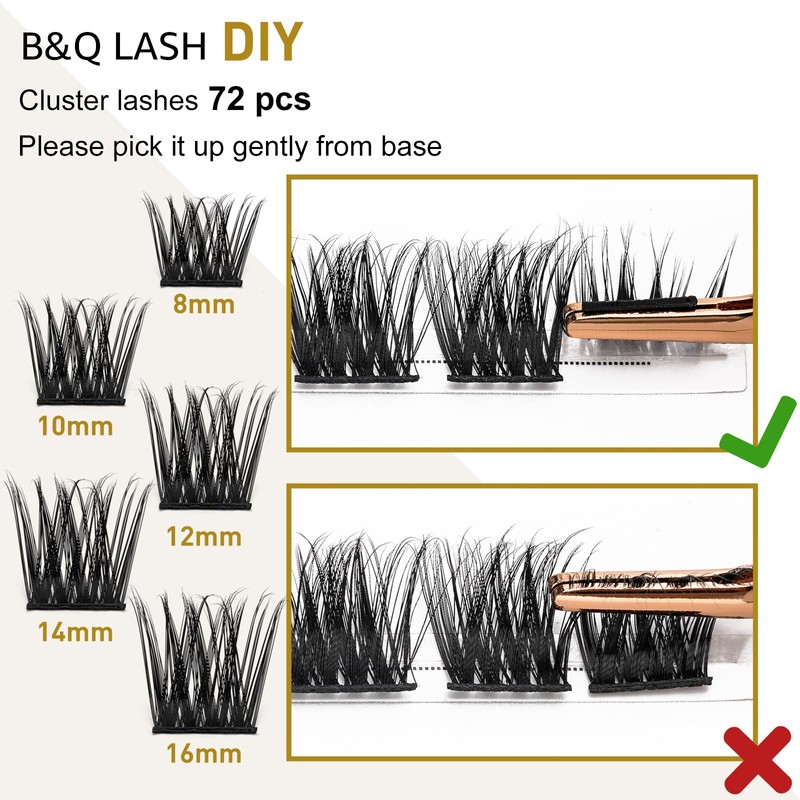 - Premium Craftsmanship: B&Q cluster lashes deliver a natural, plasticky-free look with heat-activated adhesive for secure, lasting hold. Reusable, these lightweight clusters detach effortlessly using tweezers—no breakage or residue.
