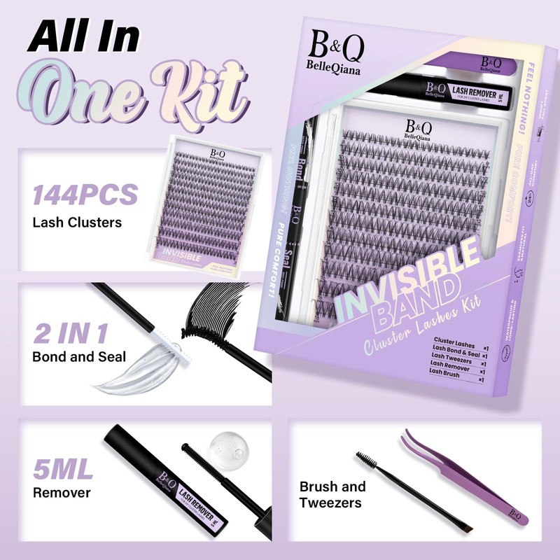 - Natural&Lightweight Cluster Lashes: Natural lash clusters kit is 144 pcs,more soft and lightweight with an Invisible Band that makes lash clusters more comfortable to wear.False eyelashes length of 8-18MIX gives you more choices.If you want to have a pair of charming eyes,please choose our individual lashes.
