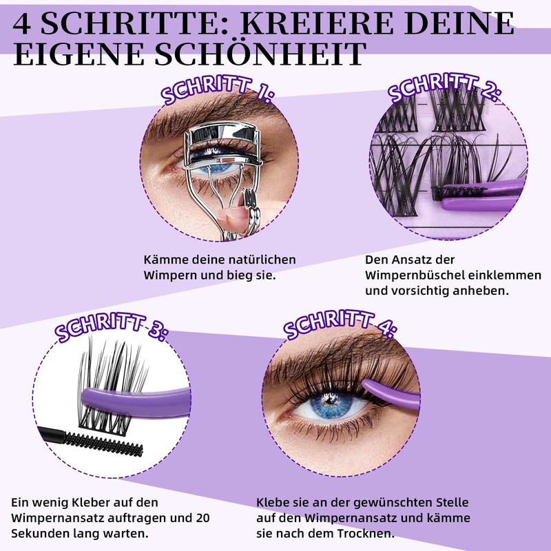 - Great styling possibilities: The individual cluster eyelashes are good for a natural look or a glamorous look. You can apply individual eyelashes in ascending direction, which gives a beautiful cat eye effect. Different sizes are suitable for different needs. The individual eyelashes fit different lengths of natural eyelashes perfectly and allow for many application possibilities.