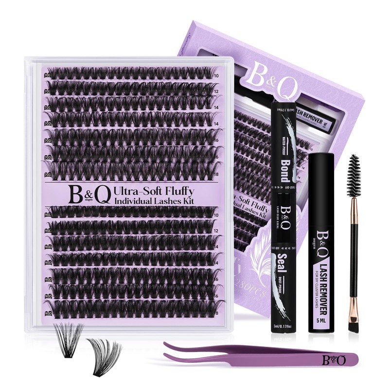 B&Qaugen 280 Pieces Eyelash Extensions Set, 70D + 90D DIY Full Lashes Extension Set, D Curl, Gentle & Professional Cluster Lashes for Home, 10-18 Mix, Super Soft (70D+90D-D-10-18MIX)