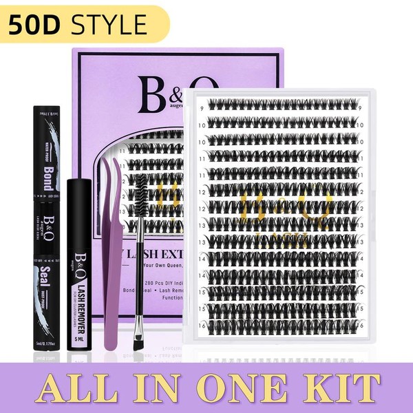 B&Qaugen 30D+40D Lash Kit l Natural Look Long Lasting Lashes Beginner Friendly Eyelashes with Bond&Seal Remover Extensions at Home Mother's Day Gift:_50D KIT