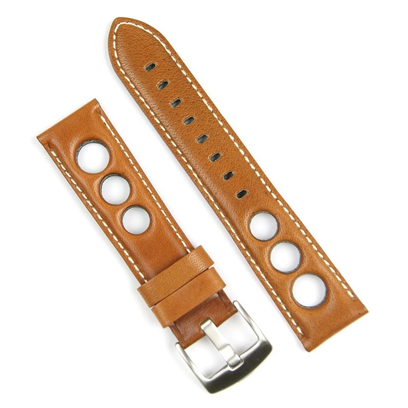 - B & R Bands quality horween leather watch band designed in a classic 3 hole rallye strap style.