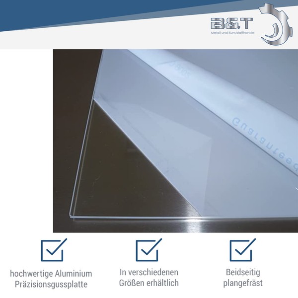 B&T Metal Acrylic Glass PMMA XT Panel, Transparent, UV-Resistant, Coated on Both Sides 2.0 - 15.0 mm Thick, Available in Various Lengths