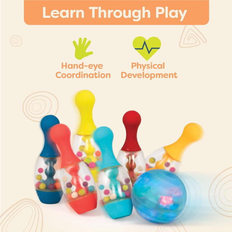 B. toys – Let's Glow Bowling! – Multicolored Six Pin Toy Bowling Set with Flashing Light – Up Ball & Carrying Caddy for Kids – 2+ Years