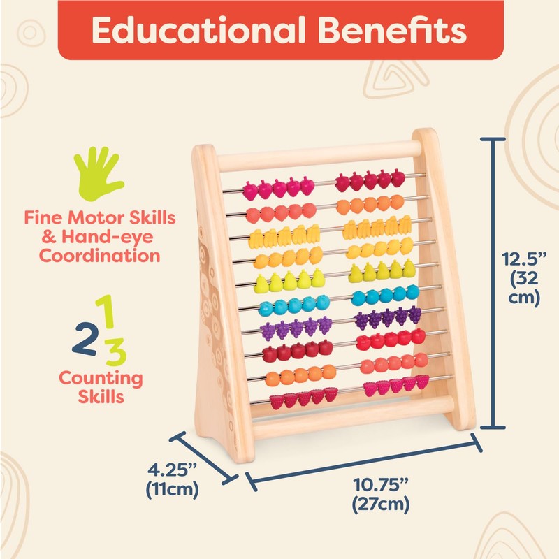 B. toys – Fruity! Wooden Abacus for Kids Classic Math Learning Toy with 100 Beads Educational for Addition, Subtraction Numbers & Counting 18+ Months