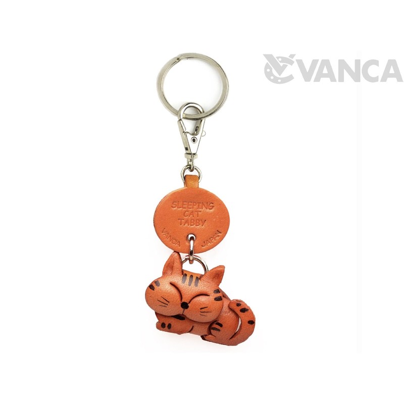 とらねこ ねむり 本革製 猫 キーホルダー バンカクラフト革物語 (日本製 ハンドメイド)