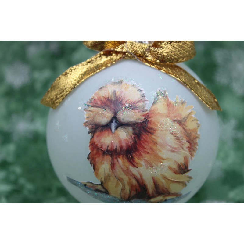 B037 Hand-made Christmas Ornament - chicken - gold buff silky silkie hen (gold)
