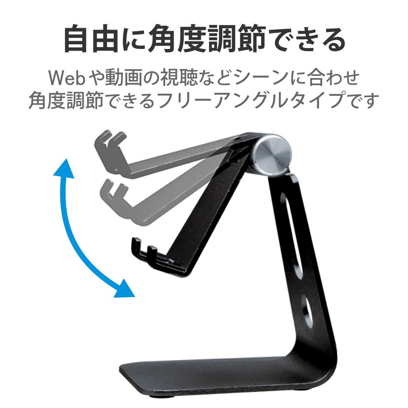 • The holder part is a free angle type that can be freely adjusted to suit the situation, such as web browsing or watching videos