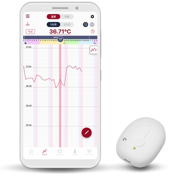 - 【つけて、寝るだけ、計測の煩わしさはもうありません】自分の温度リズムを毎日決まった時間を測定し、記録できるウェアラブルデバイス。寝ている間に女性の温度リズムを自動計測するデバイスです。