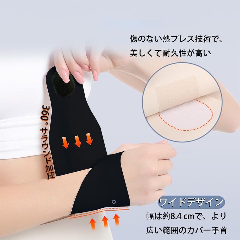 これは手首をサポートするために特別に設計された製品です、素材は柔らかく、手触りが良く、履きやすいので、手首への負担を軽減し、腱炎を予防・緩和します。