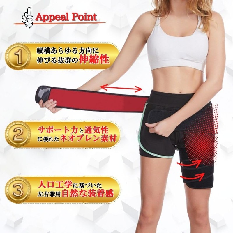 股関節サポーター 左右兼用 男女兼用 股関節 歩行サポート 骨盤サポート 変形性膝関節 マジックテープ 簡単装着 ふとももサポーター 歩行 介護