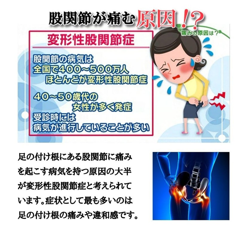 - 股関節を固定し筋力をサポートすることで、痛みを和らげ、 正常な骨盤維持に矯正する事を目的に作られました。