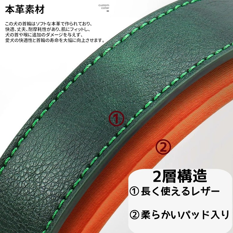 犬首輪 犬 首輪 迷子札 首輪 名入れ 刻印 犬用訓練首輪 小型、中型、大型犬用首輪 サイズ調節可能 ペット用品 ハーネス 犬の首輪 革 レザー 超軽量 通気パッド おしゃれ かわいい レザー彫刻