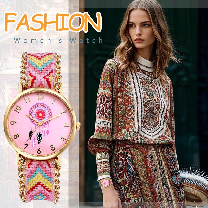 腕時計 レディース ボヘミアン 編み込み 可愛い: ドリームキャッチャー 防水 アナログ表示 防水 クォーツ腕時計 ファッションウォッチ レディース アクセサリー - 誕生日 記念日 クリスマス バレンタインデー プレゼント