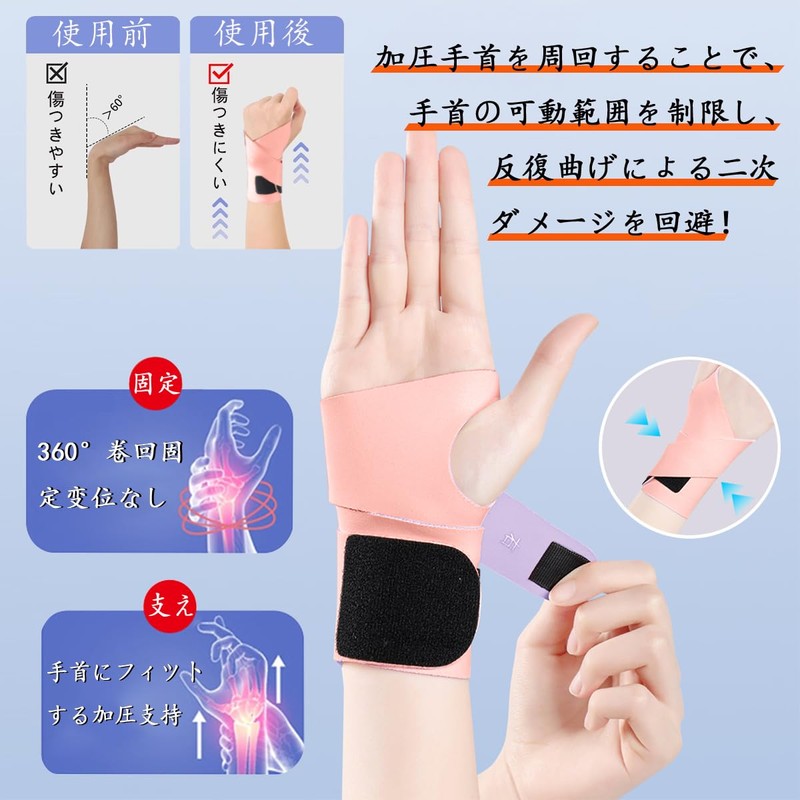 手首 サポーター 固定 保護 【二重圧力固定/柔軟で超薄型】 自由に調整可能 手首サポーター 薄手 通気性 怪我防止 軽量 柔らかくて快適 吸汗速乾 サポーター 手首 スポーツ 家事 育児 パソコン/スマホ操作 男女兼用 (右, ピンク)