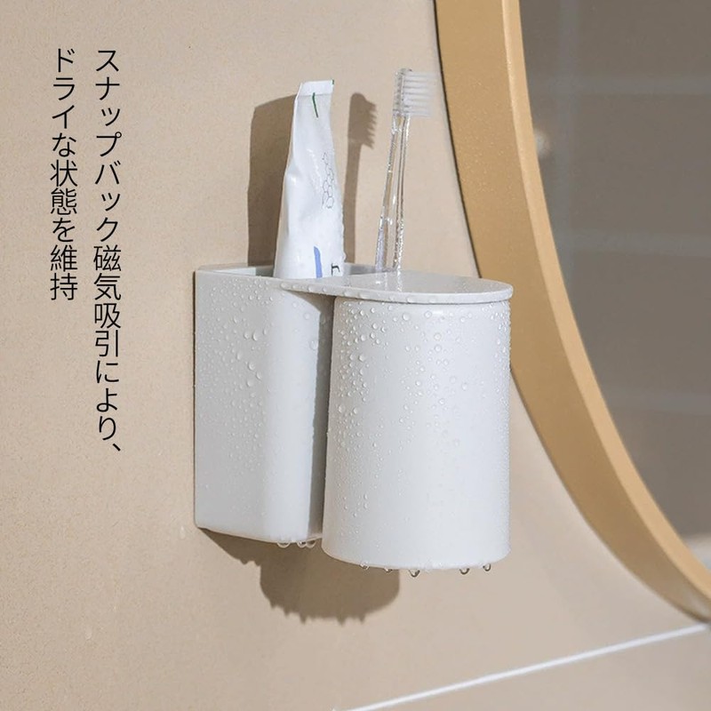 歯ブラシセット カップラックコップ 付き マグネットコップ 洗面所 収納 水垢防止防塵 創造性 歯磨き粉カップ スタンド(ホワイト)